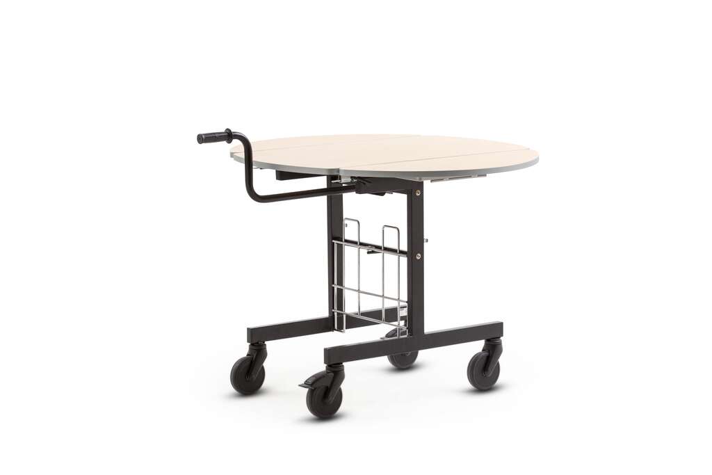 Stabilní a skládací servisní stolek s odklápěcími bočnicemi pro snadný průchod úzkými místy. Lze doplnit o ohřívací hot box.